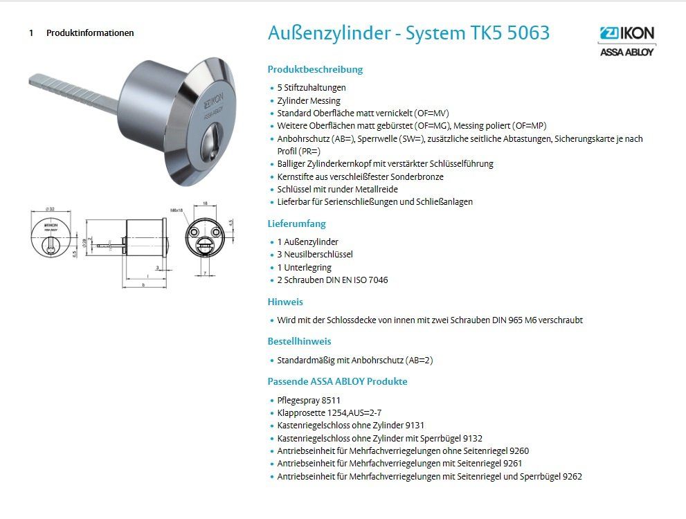 Außenzylinder werden in Verbindung mit Zusatzschlössern wie z.B. Kastenriegelschlössern und Mehrfachverriegelungen verwendet. Diese ermöglichen eine Betätigung der Zusatzschlösser von aussen.